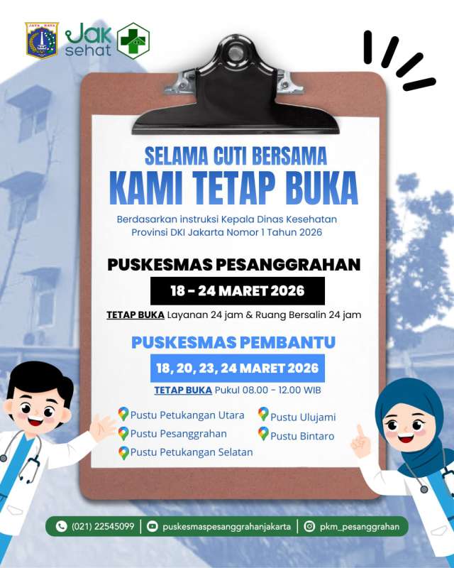 Puskesmas Pesanggrahan & Seluruh Puskesmas Pembantu Se-Kecamatan Pesanggrahan akan kembali beroperasi normal pada Rabu, 25 Maret 2026.